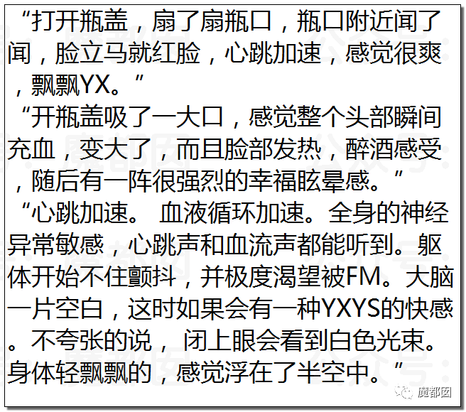 这玩意据说男0吸入之后,面对一群人也是“毫无惧色”,各位女性有男友或者丈夫的可以试着想象那个场面,我们知道现在很多腐女,但是相信我们,真正遇到这种事情,很多女性都会崩溃的。