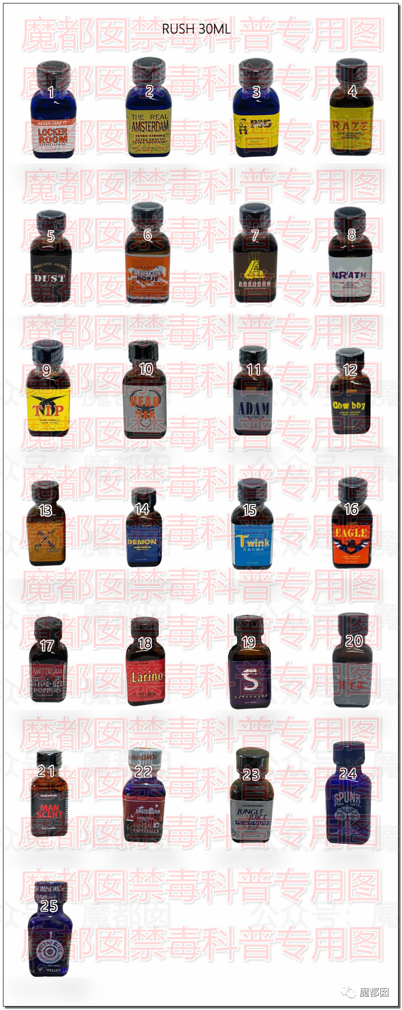 我们帮大家梳理了一下目前国际上流行的25种rush水的包装,只要你们发现家里有这个,那么大概率就完了……
