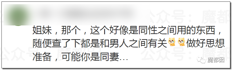 今天的文章就想借着这个事情,和大家稍微科普下这种或者说此类东西,因为绝大部分的女生对此都是一无所知,社会上到底有多少同妻我们无法想象,男同只是一种取向,骗婚骗人骗感情的就是渣到极点的事情!绝不允许!