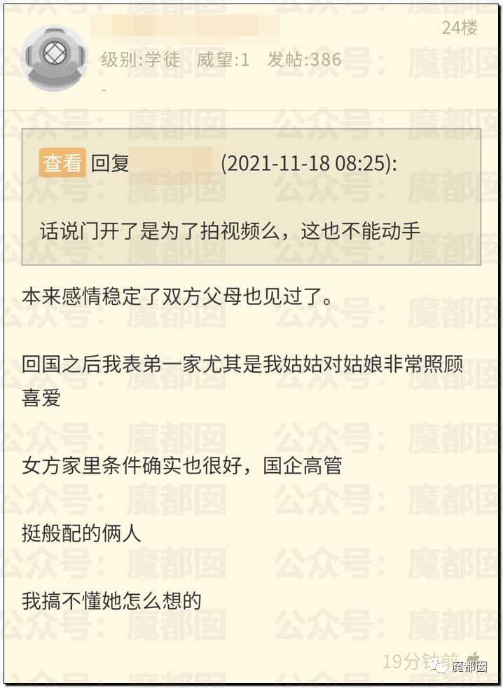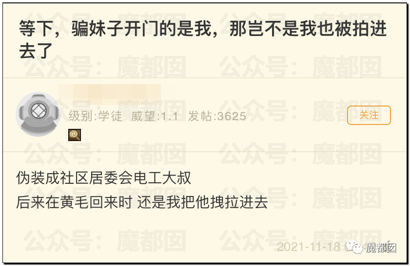 这位大哥发现NGA论坛网友有难,主动出现驱车数十里,以一口标准的本地话叫开了女的大门,还一把摁住出轨小三小黄毛。随后事了拂身去,深藏功与名,堪称典范!