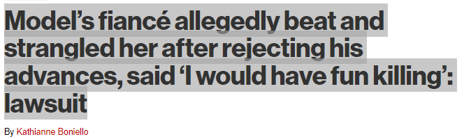 近日,曼哈顿苏豪区(SOHO)一名房地产投资者,被华裔模特未婚妻指控,华女因拒绝求欢,遭暴力和言语威胁..