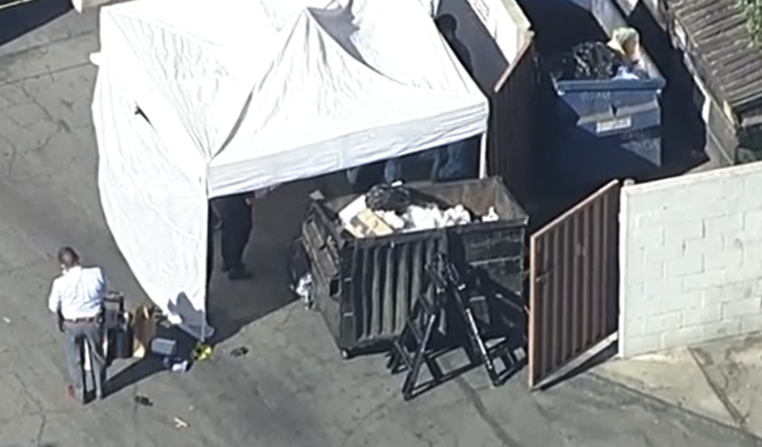 警方公布的监控视频显示,11月7日下午4时45分左右,哈斯克尔在恩西诺(Encino)文图拉大道(Ventura Boulevard)与卢比奥大道(Rubio Avenue)交汇处附近的停车场,将一个黑色大袋子扔进了垃圾箱里。