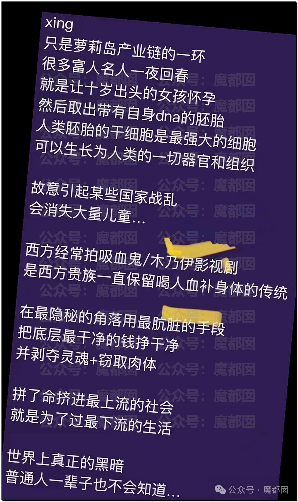 爱泼斯坦萝莉岛除了是那个之外,还有就是让自己青春永驻。欧美权贵什么都有了,有钱有权,唯一怕的是衰老。这可能只是产业链上的中间环节,和彼得尼加德岛攫取胚胎构成闭环,萝莉-怀孕-胚胎—具有自己基因的干细胞,干细胞回输,延缓衰老青春常驻。电影都不敢这么拍!