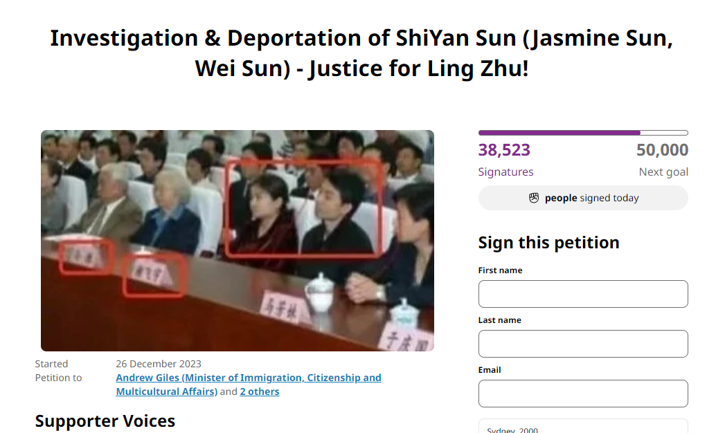无数华人联名请愿,就像之前在美国那样,希望澳洲政府能够将她驱逐出境。