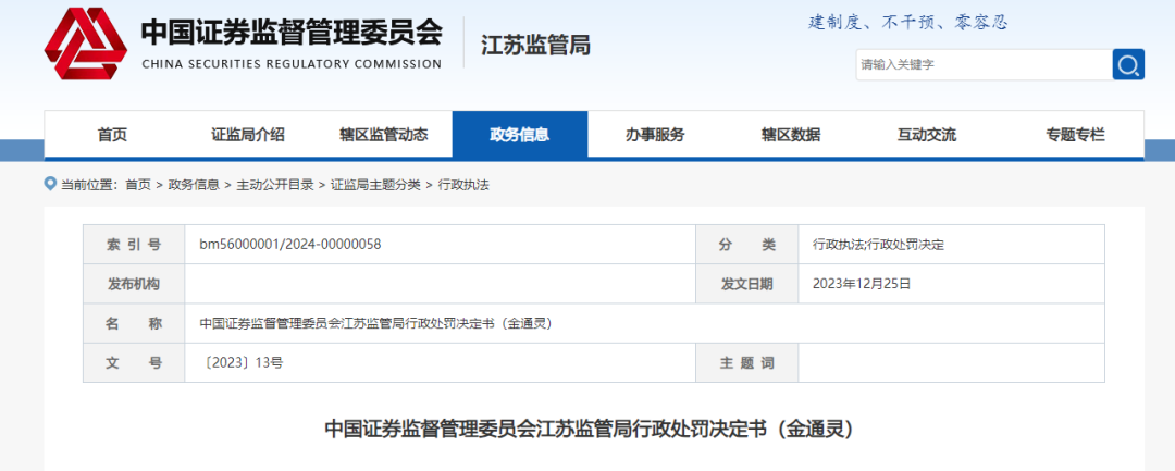 2023年6月,因涉嫌信息披露违法违规,证监会决定对金通灵立案。2024年1月3日,金通灵正式收到了《行政处罚决定书》。