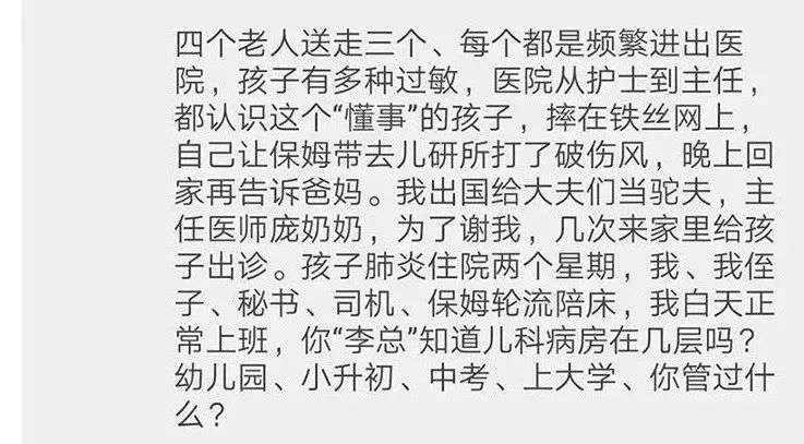 这点俞渝曾经在和李国庆撕逼时讲过一个细节,那就是儿子受了伤,也不会和父母说,而是让保姆带着去打破伤风。