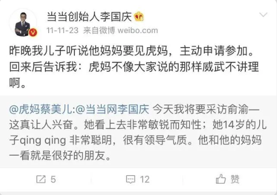 而这建议也被俞渝采纳了。高中毕业之后,这孩子更是说“自己以后不想继承当当,而是想通过创业来收购父母的公司。”