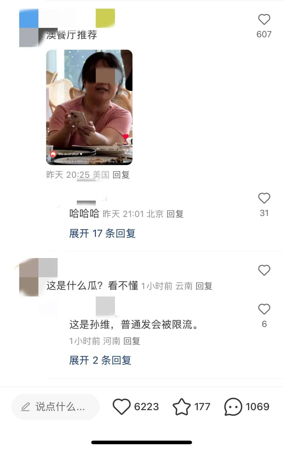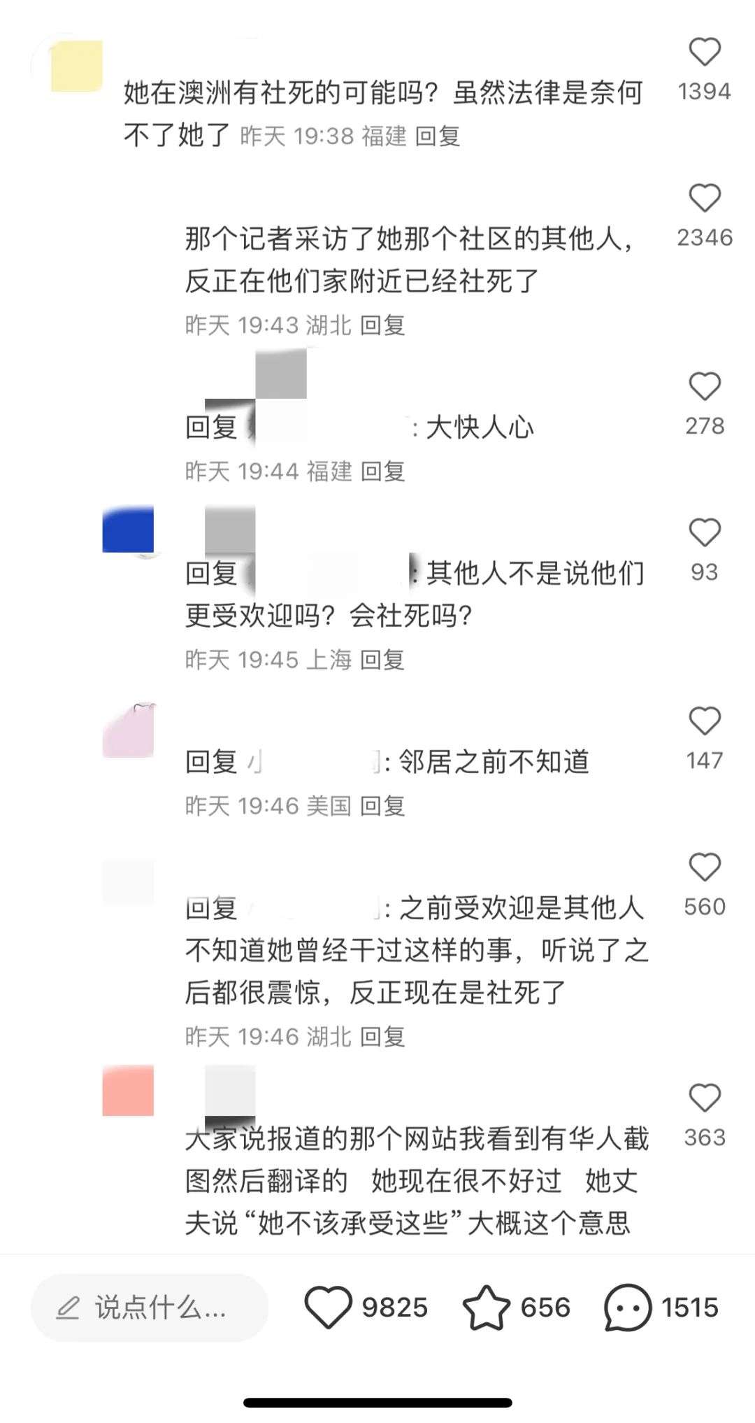 目前由澳洲华人和澳媒报道发酵后,据说sun本人的事迹已经在她生活的社区里传开,估计会“社死”。