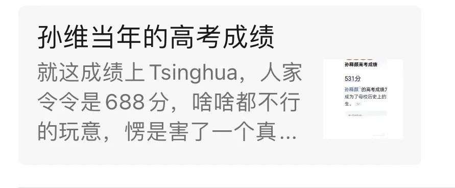 除此之外,孙维当年的高考成绩也被曝光了!