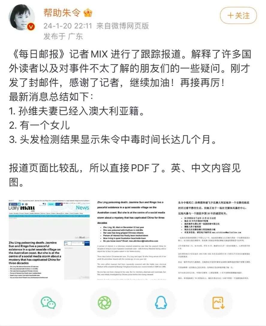 收藏孙维案已移交内政部!被曝患癌!民宿+高考成绩被扒!朱令父母对孙在澳近况再回应!更多国际媒体已全面曝光