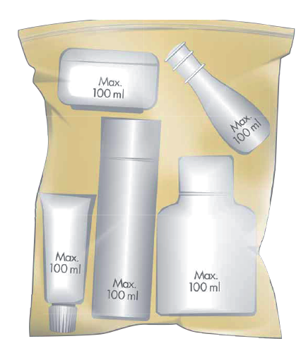 💧随身物品例如:液体、凝胶、喷雾剂等。