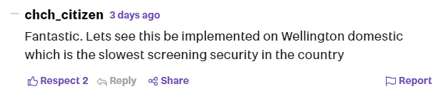 有网友在新闻下面留言称:“太好了。期待看到惠灵顿机场实施,他们是新西兰最慢的机场。”