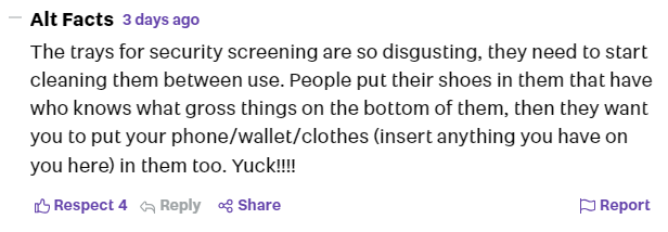 “安检用的托盘太恶心了。应该用完一次就清洁一次。