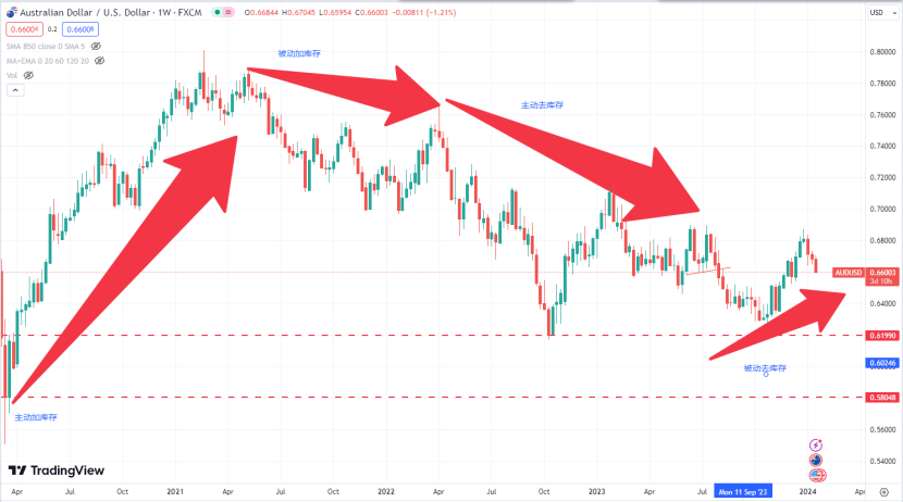 下面我们就以澳币走势为例来解释下周期的运行。