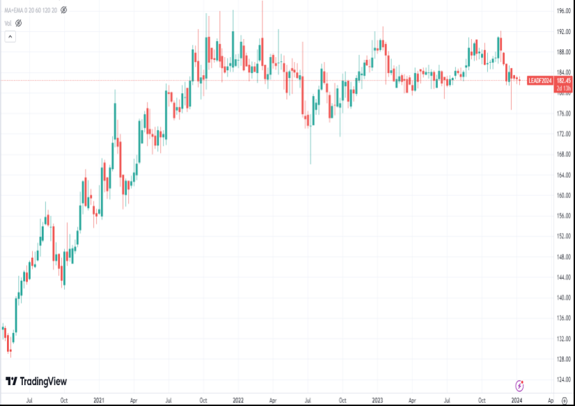 铅价一直处于高位横盘。