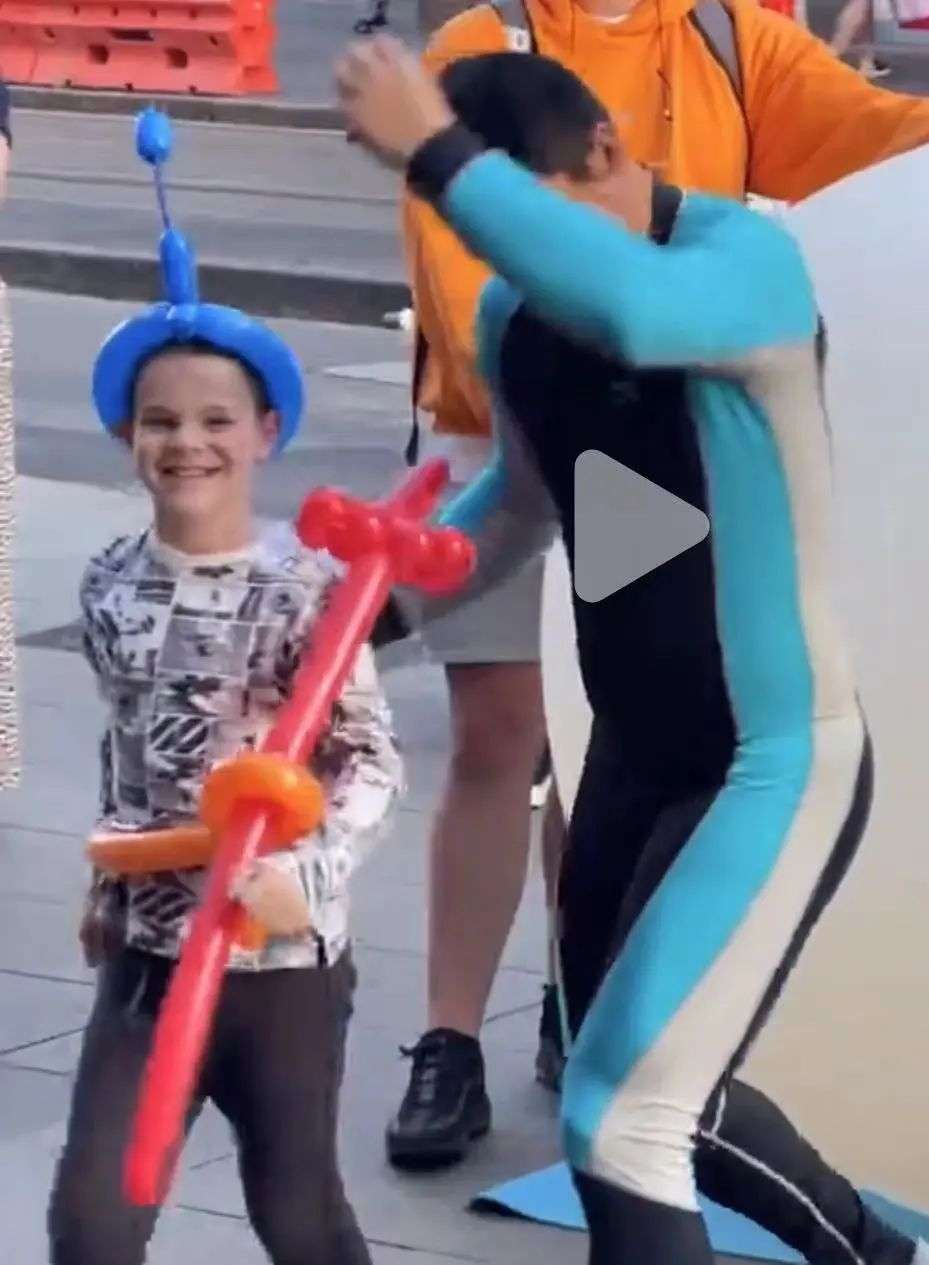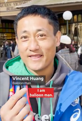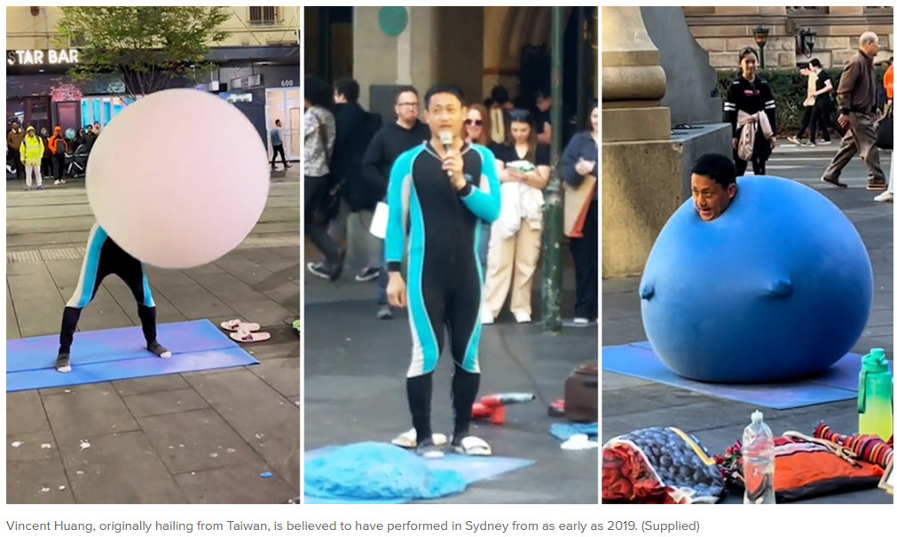 Huang来自中国台湾,来到澳洲之前,他从事表演工作。7年前,他决定开启一段新的旅程,于是辗转来到澳洲,在这里,他继续着自己热爱的表演工作:魔术、驻唱、杂耍、扎气球等等。其中,大家最常见的,就是他把自己藏在一个巨大的气球里,跟随着音乐节奏,做出各种滑稽的造型。然而,相信看到过Huang表演的妈妈们都能看的出来,每次他钻出气球的时候,虽然尽量保持面部微笑,但一闪而过的痛苦神色,还是让人能感受到气球表演绝非易事。他表示,在自己的家乡,这种气球街头表演很常见,但他到澳洲之后,发现很少有人表演这种节目,于是开始自学,“刚开始是想赚点钱,于是开始学习这种表演,那时候也吃了一些苦,后来慢慢习惯了这种生活...”一开始,Huang只是一个默默无闻的普通街头艺人,也常常在表演时遭到一些恶意的攻击,就比如在表演的时候,很长一段时间他的头部都是在气球里,这也就意味着,如果有人在外面使坏:“戳破气球”或者“偷走他的东西”,他也只能认栽。直到去年8月,一段路人拍摄Huang表演的片段上传到了TikTok,之后视频意外走红,2天播放量破600万,也让Huang一夜爆红,圈粉无数,不少网友纷纷闻讯赶来和他合影。