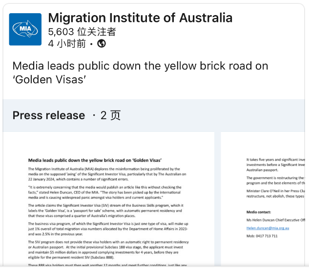 微墨尔本 2024-01-26 12:09重大失误,投资移民签证取消,为澳媒错误报道,夸大报道耸人听闻,情况并不属实!