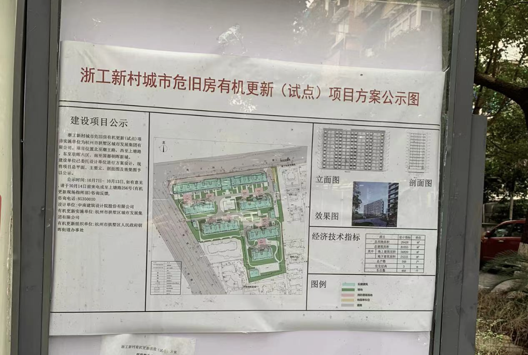 对于“居民自发重建”的说法,事实上,根据公示,浙工新村的房屋业主被认定为此次更新主体,杭州市拱墅区人民政府朝晖街道办事处为组织单位,并由拱墅区城市发展集团公司负责实施更新。