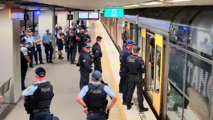 大批黑衣人闯进悉尼火车,