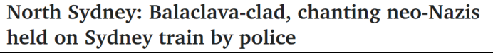 昨天,悉尼的气温高达40度,而中午刚过,一群穿着军装靴子、身穿印有白色权力标志的黑色制服的人们在Artarmon车站登上了火车。