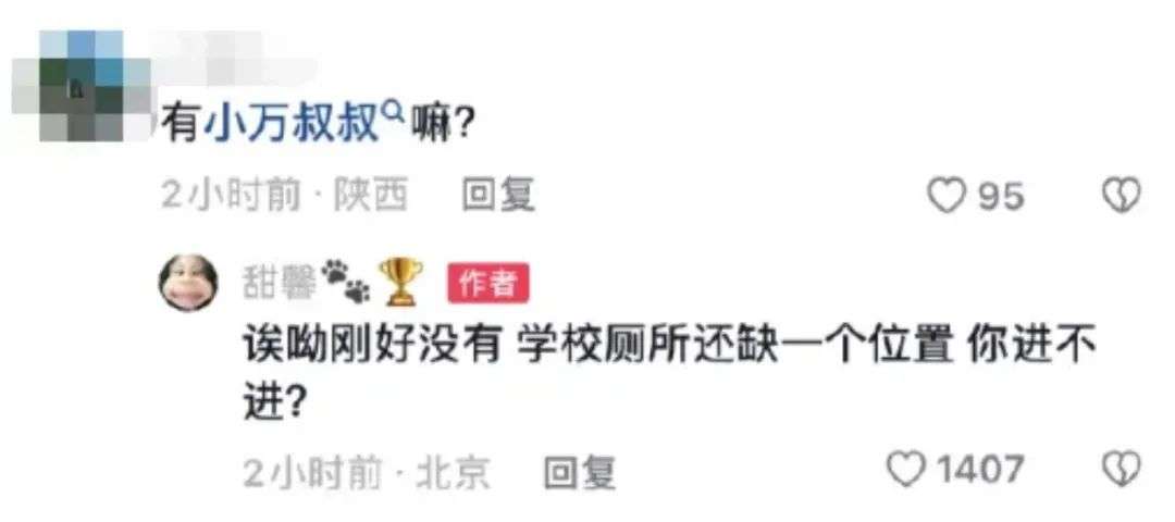 最近,有网友在甜馨分享校园生活的个人账号下恶意评论:有小万叔叔嘛?
