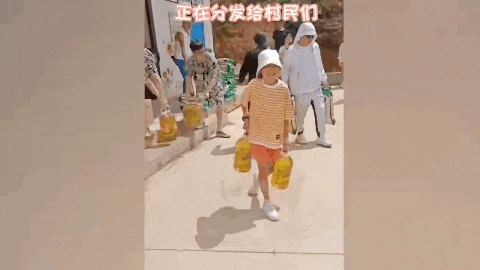 偶尔也会带上甜馨去山区做慈善,让女儿和自己一起分发物资: