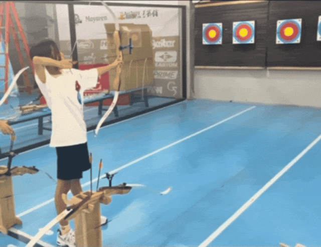 为了培养甜馨的专注力,经常带她一起去射箭。