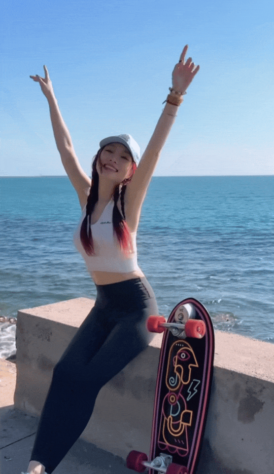健身、跳舞、滑板,堪称严格的身材管理,让40+的她乍一看还和少女一般元气满满。
