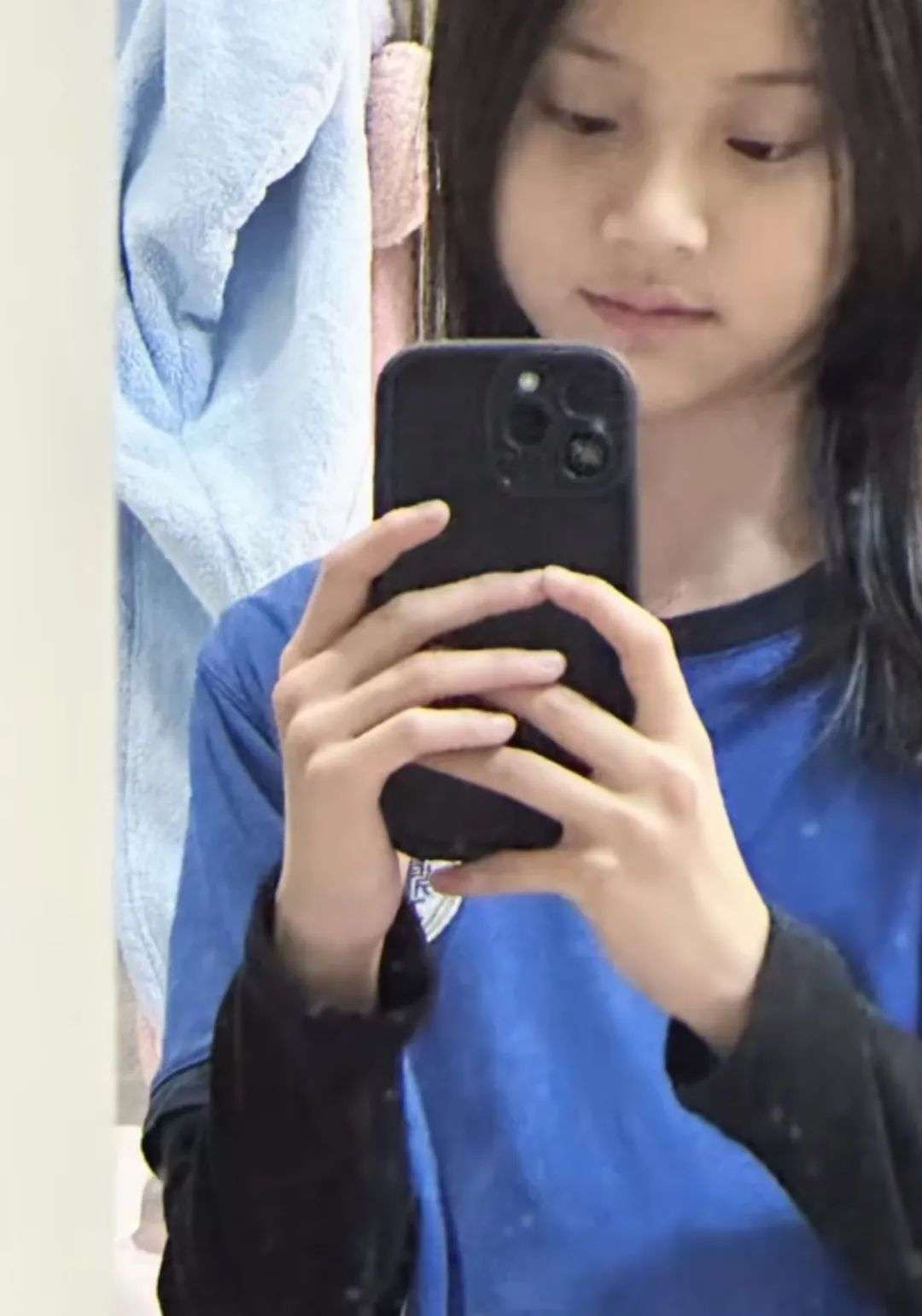 像每个爱美的小女孩一样,甜馨平时也会分享一些自拍。五官长开的她,越发清秀: