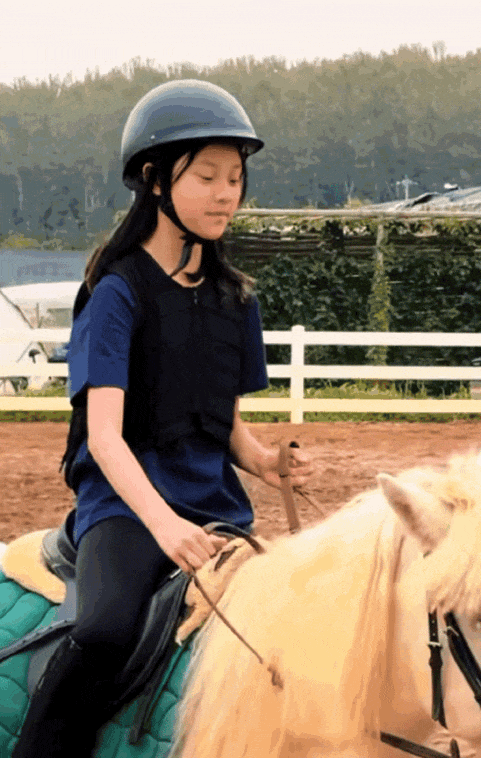 你可比妈妈好看多了!从不打压女儿的李小璐,为了增强甜馨的勇气和胆量,还常带她去马场感受自然和骑马的乐趣: