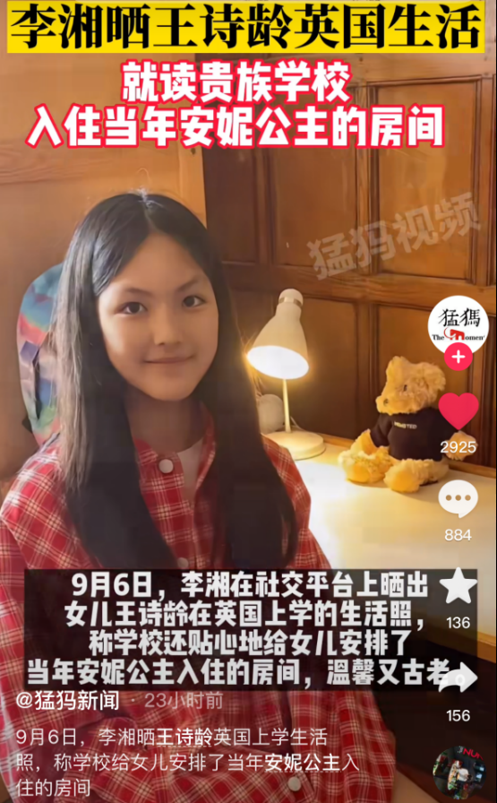 当普通孩子都在拼命内卷的时候,李湘的女儿王诗龄,正在英国伦敦的贵族学校里学习真正的素质教育,没有学业压力。