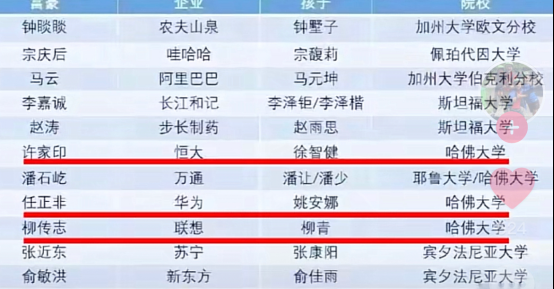 任正非,柳传志的孩子都是哈佛大学毕业的。