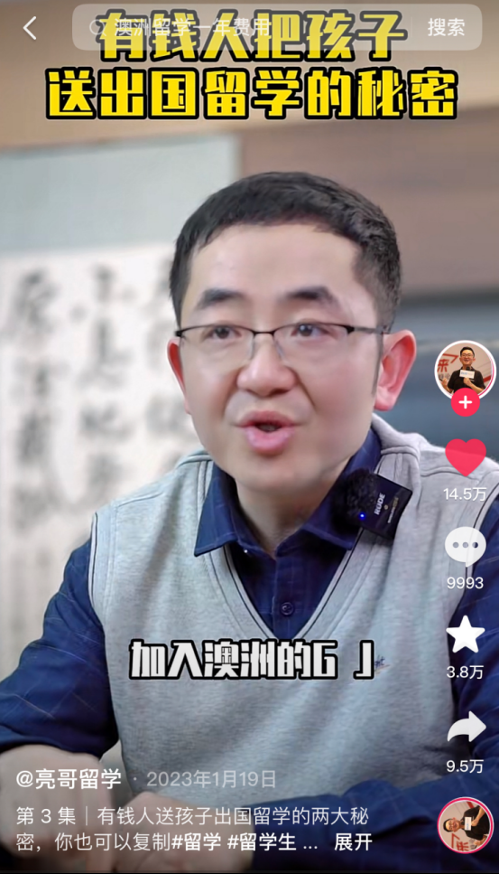 他认识一个富人,在孩子小学的节点上,送他们去澳洲。