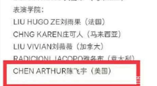 比如陈凯歌的儿子陈飞宇,就是用外籍身份考上的北京电影学院。