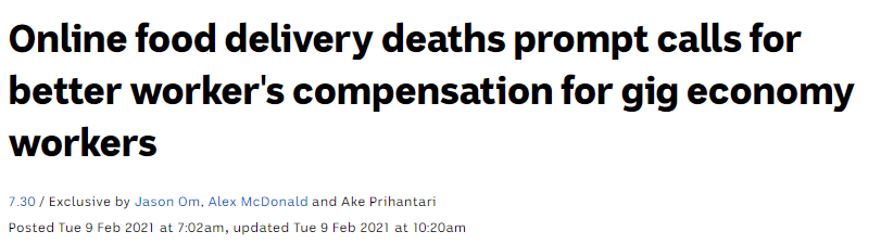 但是,外卖员是澳洲一个非常特殊的职业,也就是零工行业——一种没有底薪,没有什么工作安全保障的行业。