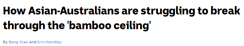 这一点就连澳媒都进行过很多报道,针对女性,有职场的玻璃天花板,针对亚裔,则是竹子天花板'bamboo ceiling'。