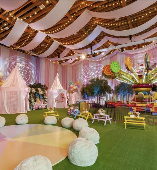 粉色的娃娃,气球,跑道,冰淇淋车,连地板都重新铺了一遍。