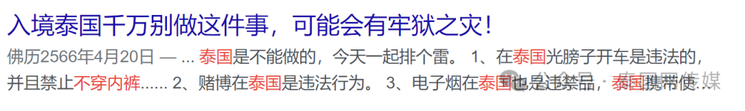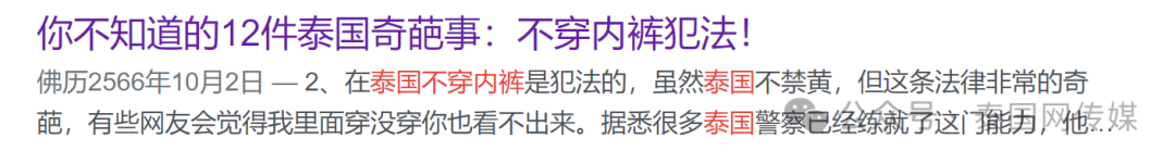 而当中被偷换的概念是“游客暴露身体”=“可能没穿内裤”,于是在泰语的绝缘下,一堆擅长说中文的中国网友“一传十,十传百”,吓得不少中国游客入境后先去厕所把内裤换上。