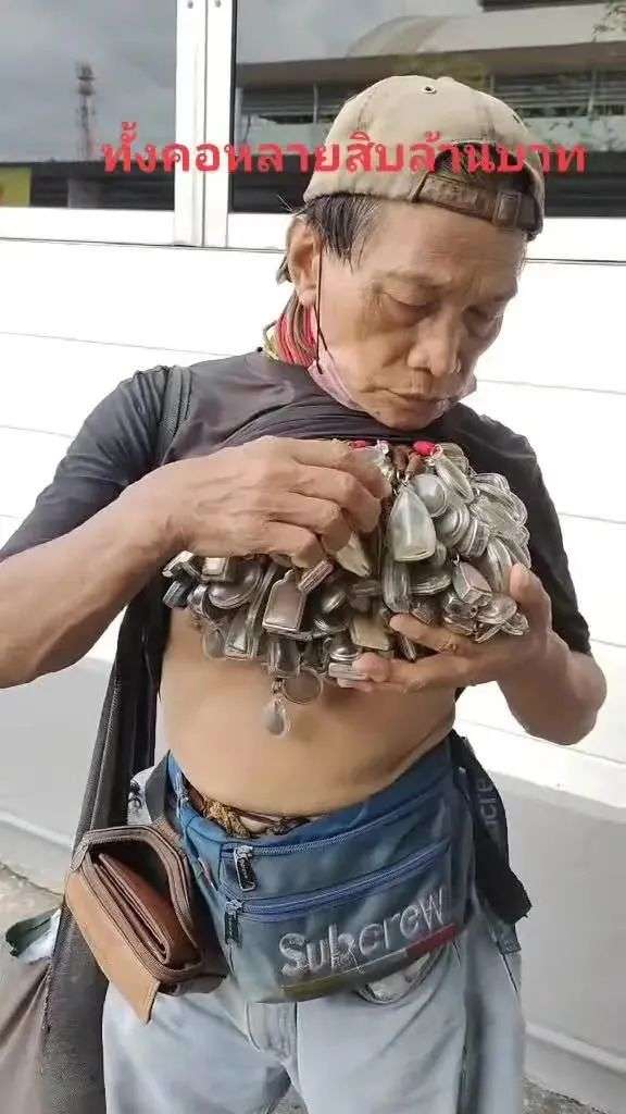 下图泰国网红大叔,一脖子的牌,全是几十泰铢几百泰铢的“爱好积累”,这些东西,原本就是无关金钱,可偏偏被外国人整出了“消费段位”。