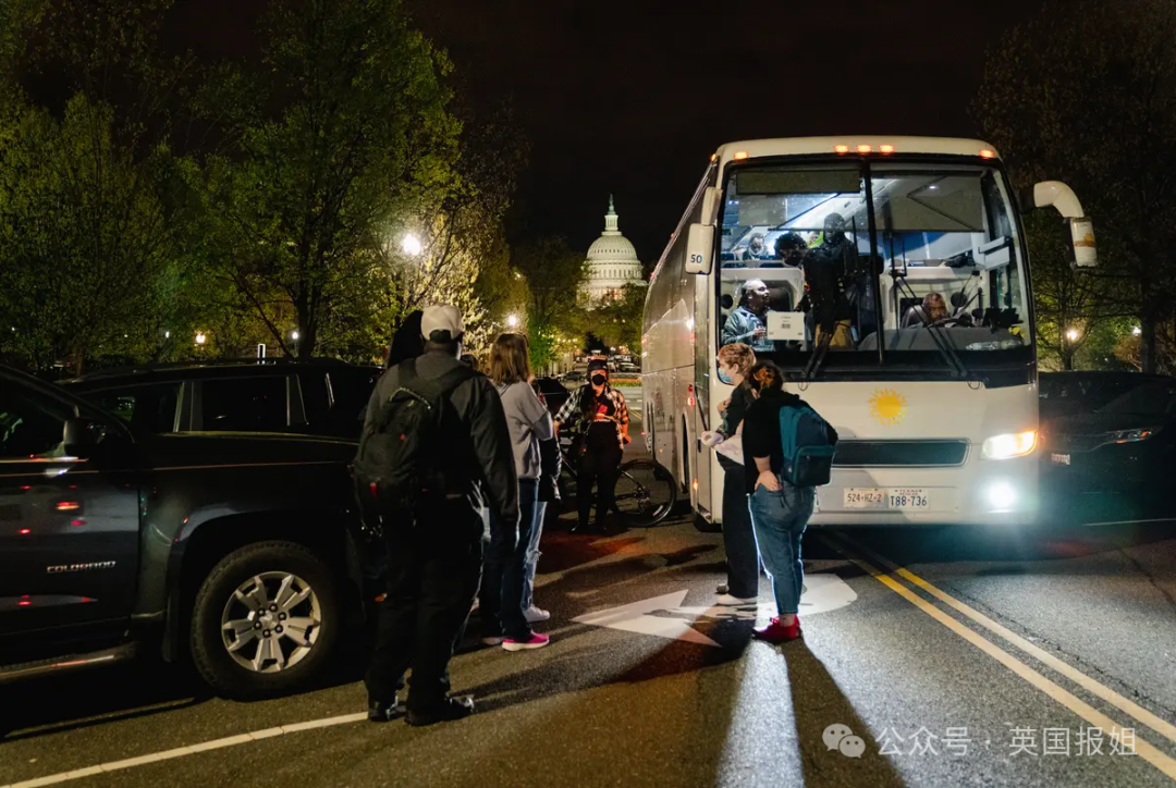 通过这种方式,得州花费1.24亿美元,还真的将10万移民转移到了其他地方。有次甚至直接把两车移民送到了副总统家楼下。