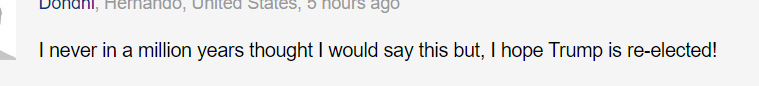 “我要说一句我自己都想不到的话:特朗普赶紧回来吧!!”