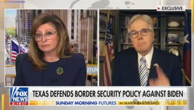 得州副州长Dan Patrick接受福克斯采访,面对主持人“冲突会不会演变成内战”的提问时回应:“拜登试图把这事变成一场政治斗争,变成一场与我们国家的斗争。但千万别惹得州。保卫边境这事儿,我们是认真的。”