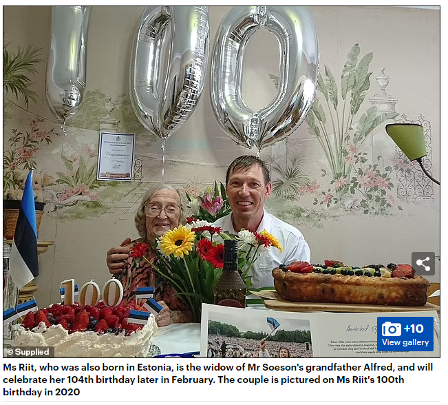 Elfriede Riit也在爱沙尼亚出生,二战后逃离欧洲并成为澳洲公民。2月晚些时候,她将要庆祝自己104岁的生日。