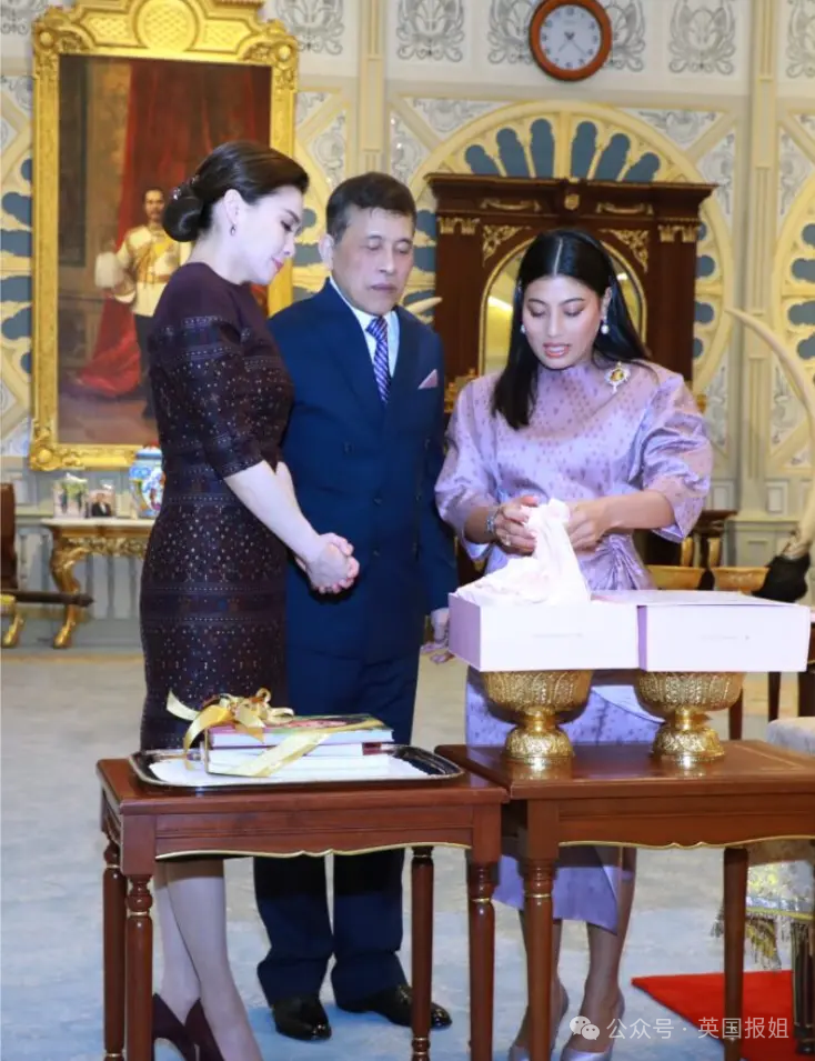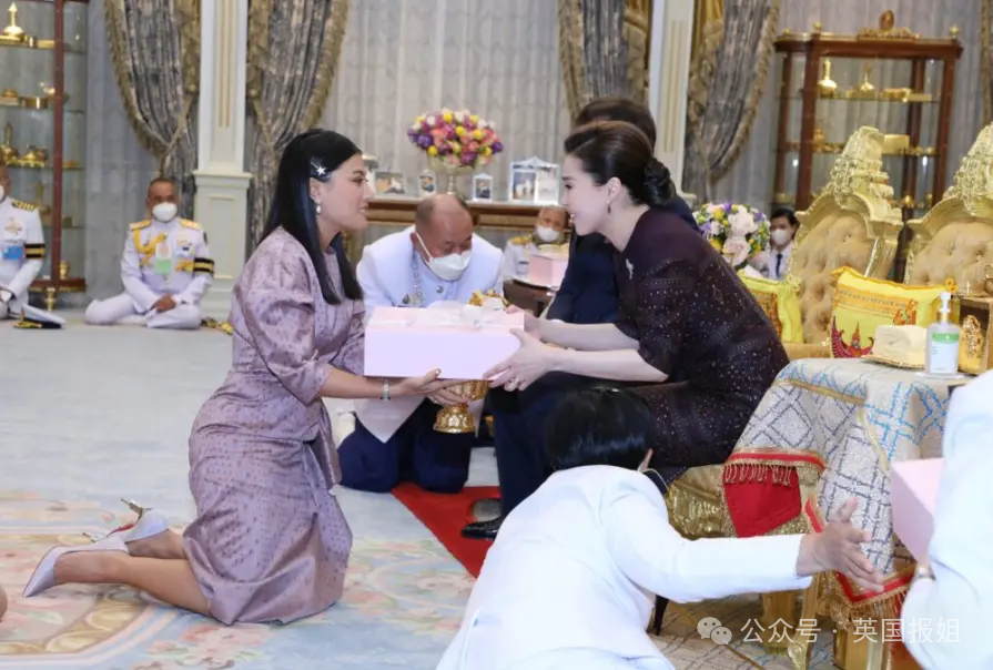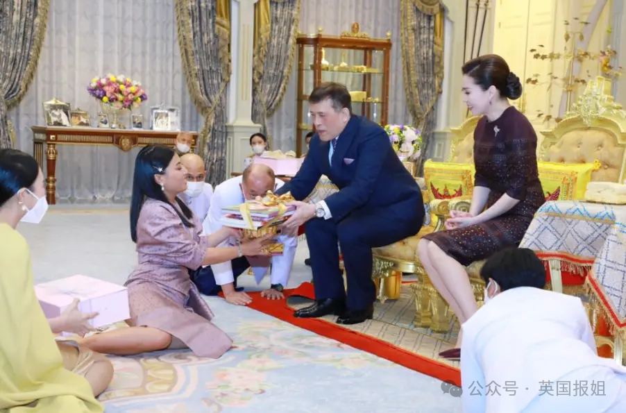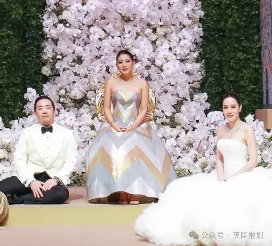 还有一位王室成员是泰国的“祥瑞”小公主思蕊梵,她一到场,泰国亿万富翁一家子都得跪下给她敬茶,场面看着挺有“喜感”…