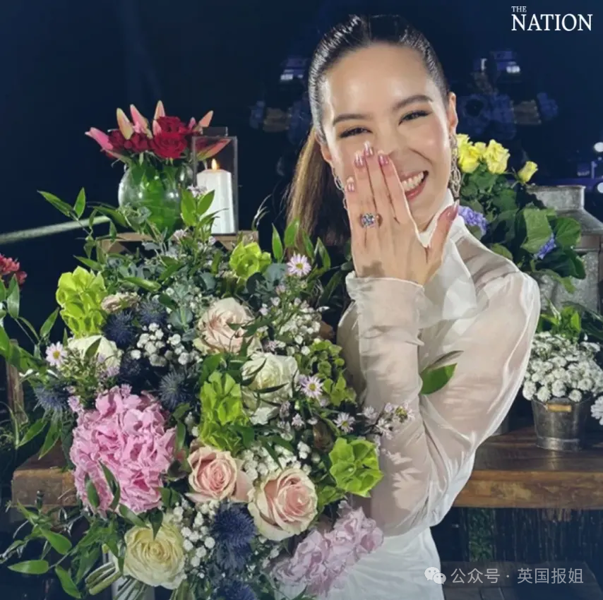 随后,她还晒出了订婚的影像和左右无名指上戴着大钻戒的照片。