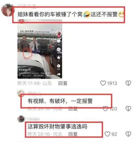 即使是在自己的车被砸的情况下,也是镇定自若地用手机留存证据,不卑不亢应对。