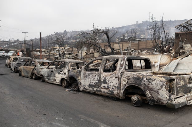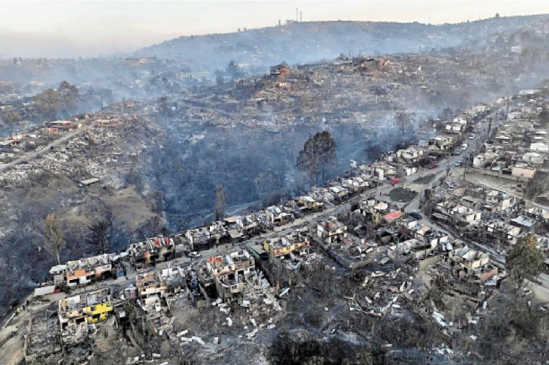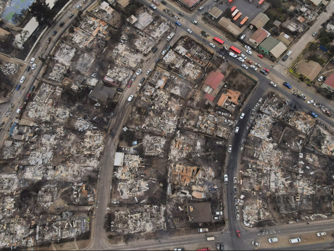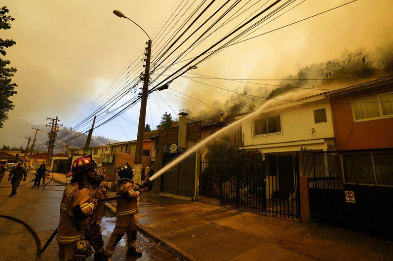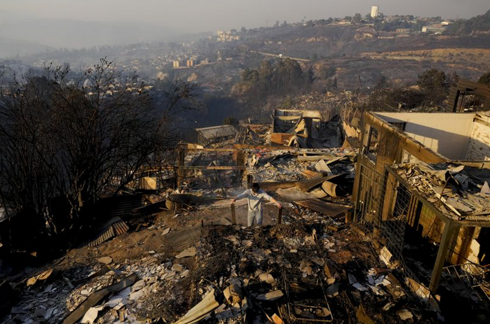 朋友们开着一辆卡车经过,“载着他们兄弟、父亲和女儿烧焦的尸体”。大火持续数天,浓烟遮天蔽日,导致交通也受到了严重影响,通往首都圣地亚哥的部分公路紧急封闭。如果只是民宅被烧毁,那还不至于造成这么惨烈的影响。当地居民拍摄的照片显示,当地的储气设施、涂料厂和化工厂等工厂都起火爆炸,产生了有毒的黑色云团,对环境、生态的破坏也难以估计。附近城镇埃尔奥利瓦尔(El Olivar)也沦为“地狱”。该镇居民Rodrigo Pulgar是火灾的亲历者。“这是一场地狱。” 他说道,“我试图帮助我的邻居……我的房子在我们身后开始燃烧。灰烬如雨点般落下。”还有居民表示,他在这里居住和工作了一辈子,然后火灾来了,他变得“一无所有”。