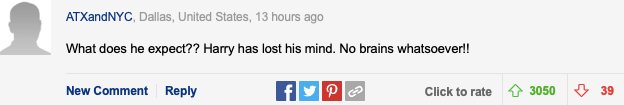 对于哈里这次回英国的遭遇,英国网民似乎态度很一致: