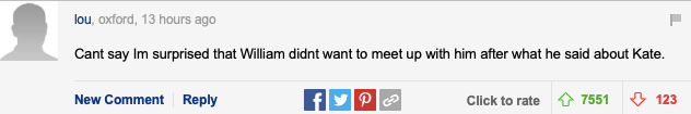“我对威廉不想见哈里这事没有太惊讶,特别在哈里说了自己嫂子的坏话之后”
