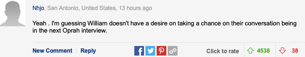 “是,我猜威廉不想在下一次的奥普拉专访里听到自己的话被曝光”